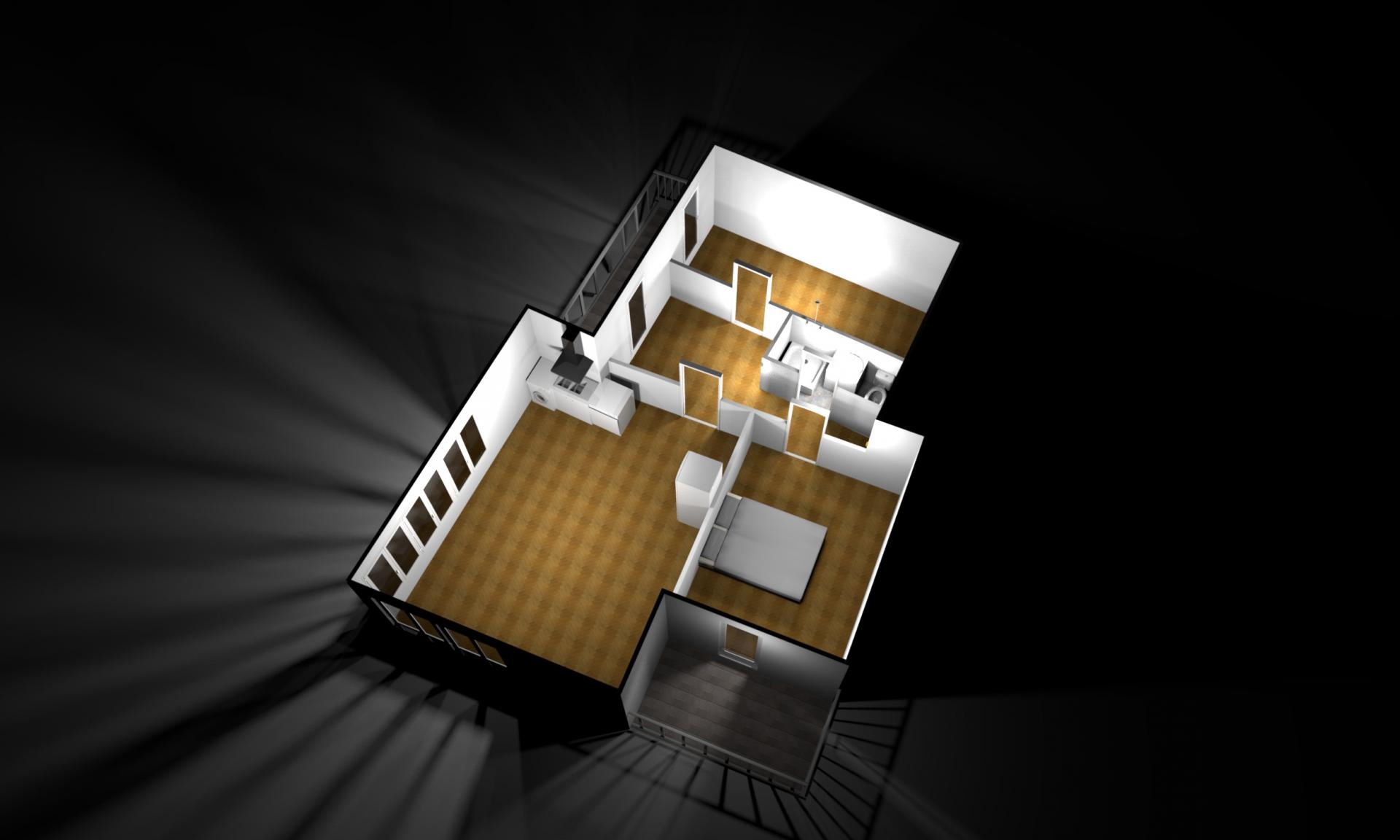 Obývací pokoj spolu s kuchyňským koutem nabízí nádherný výhled na Plzeň a okolí. Kuchyňská linka je vybavena indukční varnou deskou, digestoří, myčkou, pračkou a lednicí. Dva samostatné neprůchozí pokoje jsou vhodné jako ložnice, dětský pokoj či pracovna. Z obou těchto pokojů je výstup přes francouzské okno na terasu. Koupelna je osazena sprchovým koutem a její součástí je i toaleta.