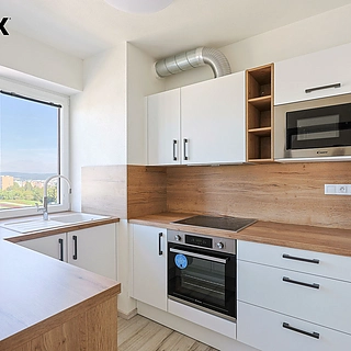 REZERVACE. Pronájem klimatizovaného bytu o dispozici 3+kk a výměře 65,7 m², který se nachází v novostavbě bytového domu v Plzni – Skvrňanech, ul. Františka Kováříka. Byt je situovaný v 5. nadzemním podlaží cihlového domu s výtahem, který byl dokončen v roce 2025. Jedná se o velmi světlý byt s okny orientovanými na západ, sever i východ, z obývacího pokoje je krásný nerušený výhled. Dům je arc